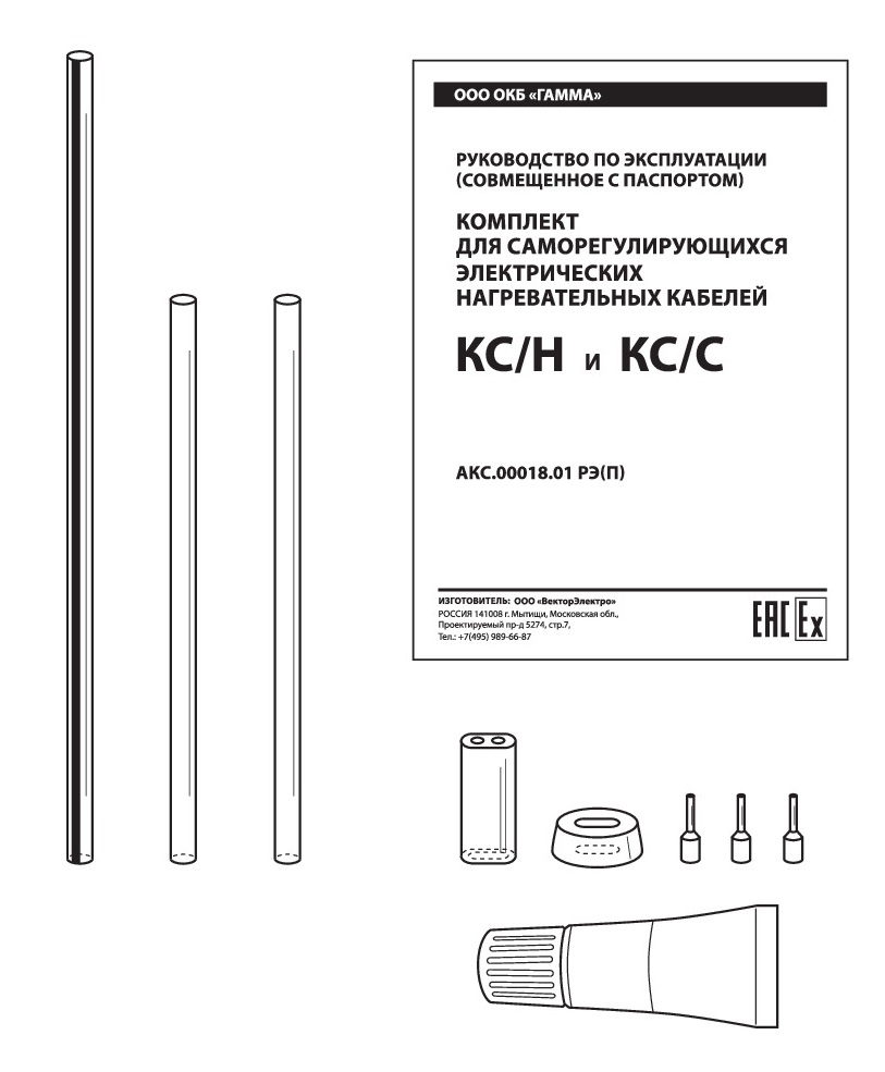 Комплекты КС/Н, КС/С, КС/В включают в себя обжимные наконечники, трубки для заземляющего провода, кремнийорганические уплотнения под кабельный ввод М25, клей-герметик объемом 10 мл.