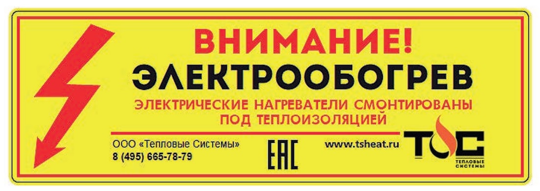 Все обогреваемые объекты в обязательном порядке должны быть промаркированы оповещающими табличками о применении системы электрического обогрева..