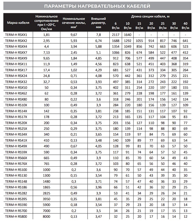 Одножильный нагревательный кабель постоянной мощности TERM-H RSXX1