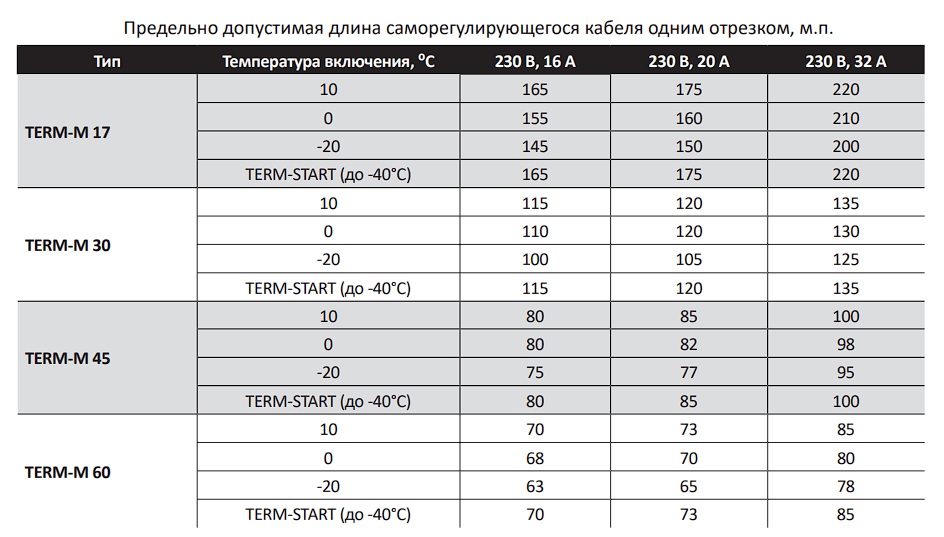 Среднетемпературный саморегулирующийся нагревательный кабель TERM-М 17