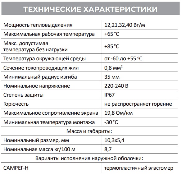 Низкотемпературный саморегулирующийся нагревательный кабель САМРЕГ-Н 21