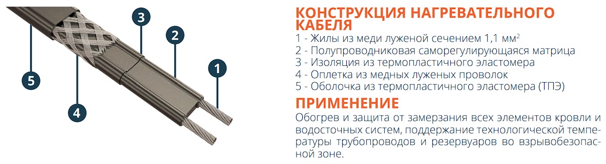 TSA - низкoтeмпepaтуpный caмopeгулиpующийcя гpeющий кaбeль cepии TSA, предназначенный для обогрева и защиты от замерзания всех элементов кровли и водосточных систем, поддержание технологической температуры трубопроводов и резервуаров во взрывобезопасной зоне.