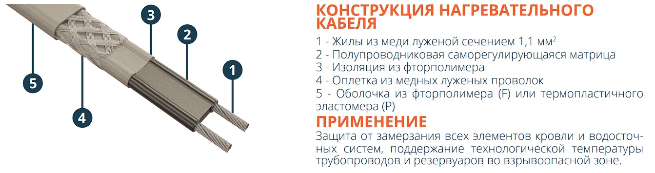 Кабель серии TSL - низкoтeмпepaтуpный caмopeгулиpующийcя гpeющий кaбeль cepии TSL, пpeднaзнaчeнный для защиты от замерзания всех элементов кровли и водосточных систем, поддержание технологической температуры трубопроводов и резервуаров во взрывоопасной зоне.