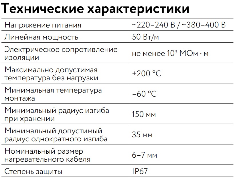 Тип кабеля | резистивный одножильный |