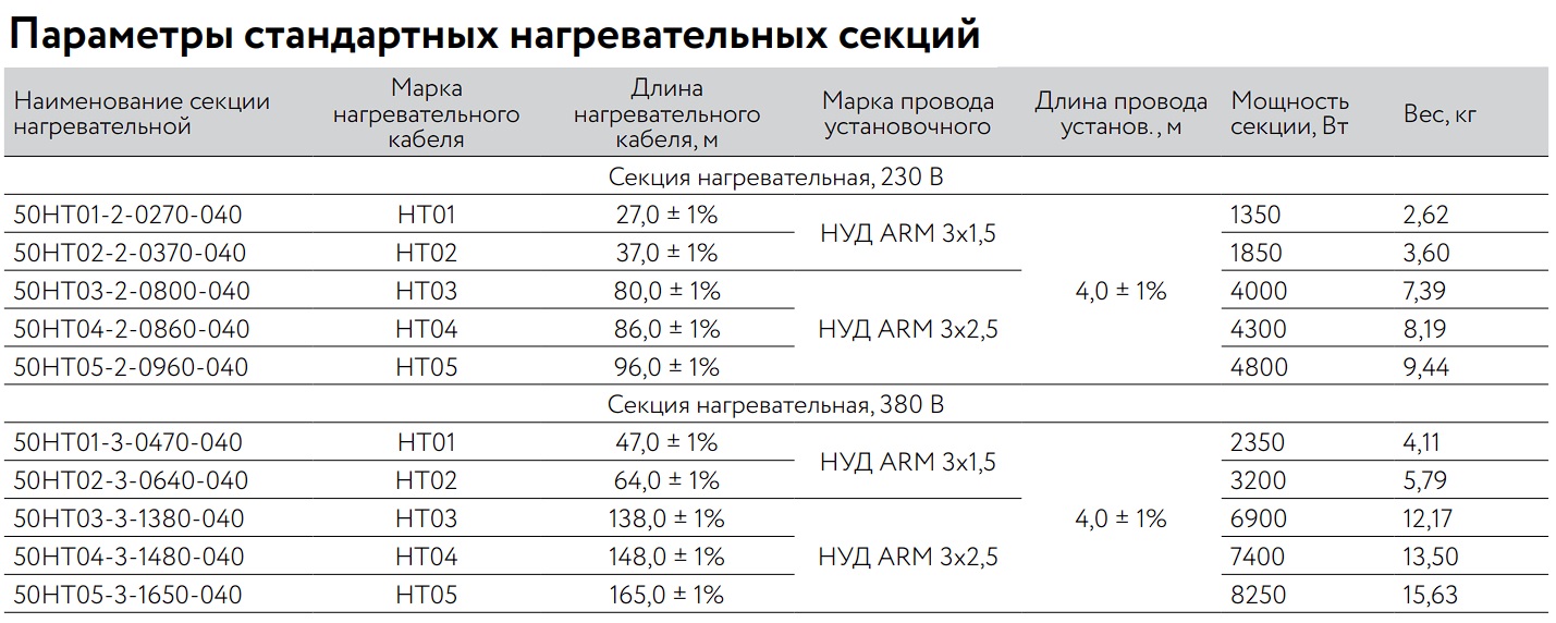 Секция нагревательная кабельная 50НТ03-3-1480-040