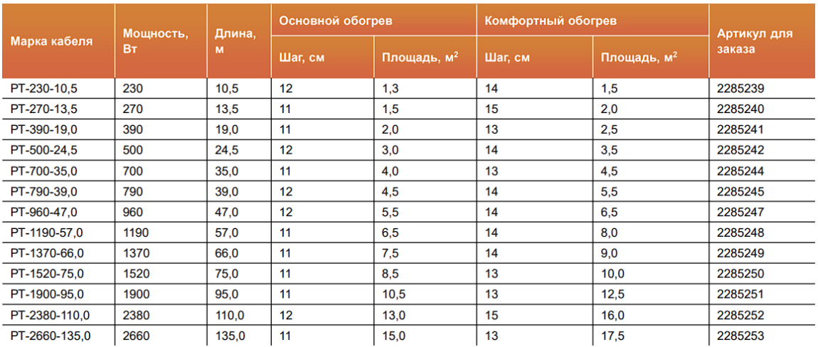 Увеличение мощности достигается путем уменьшения шага раскладки кабеля. Шаг укладки (см) = (100×S)/L, S – обогреваемая площадь, м2; L – длина нагревательного кабеля, м