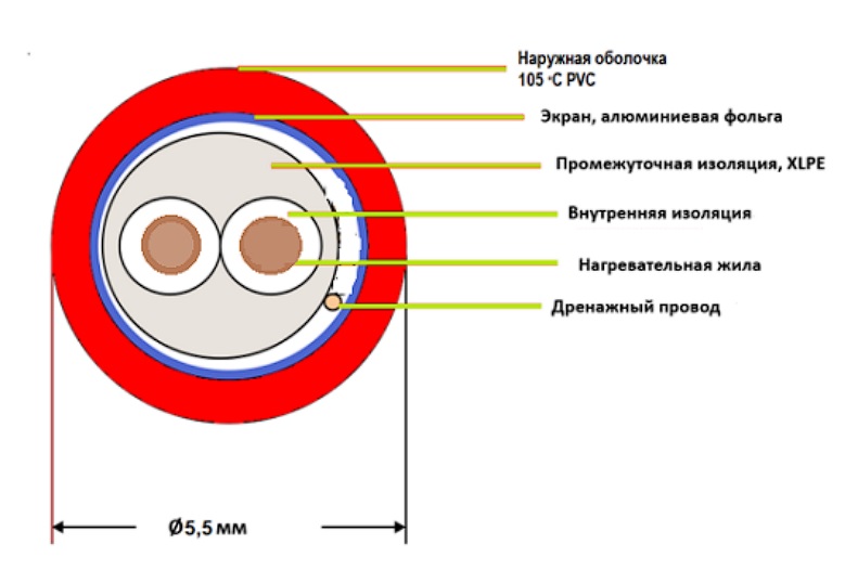 Тип кабеля | резистивный двужильный |