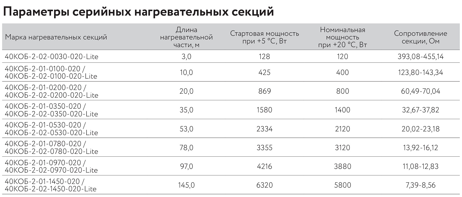 Секция нагревательная кабельная 40КОБ-2-02-0030-020-Lite