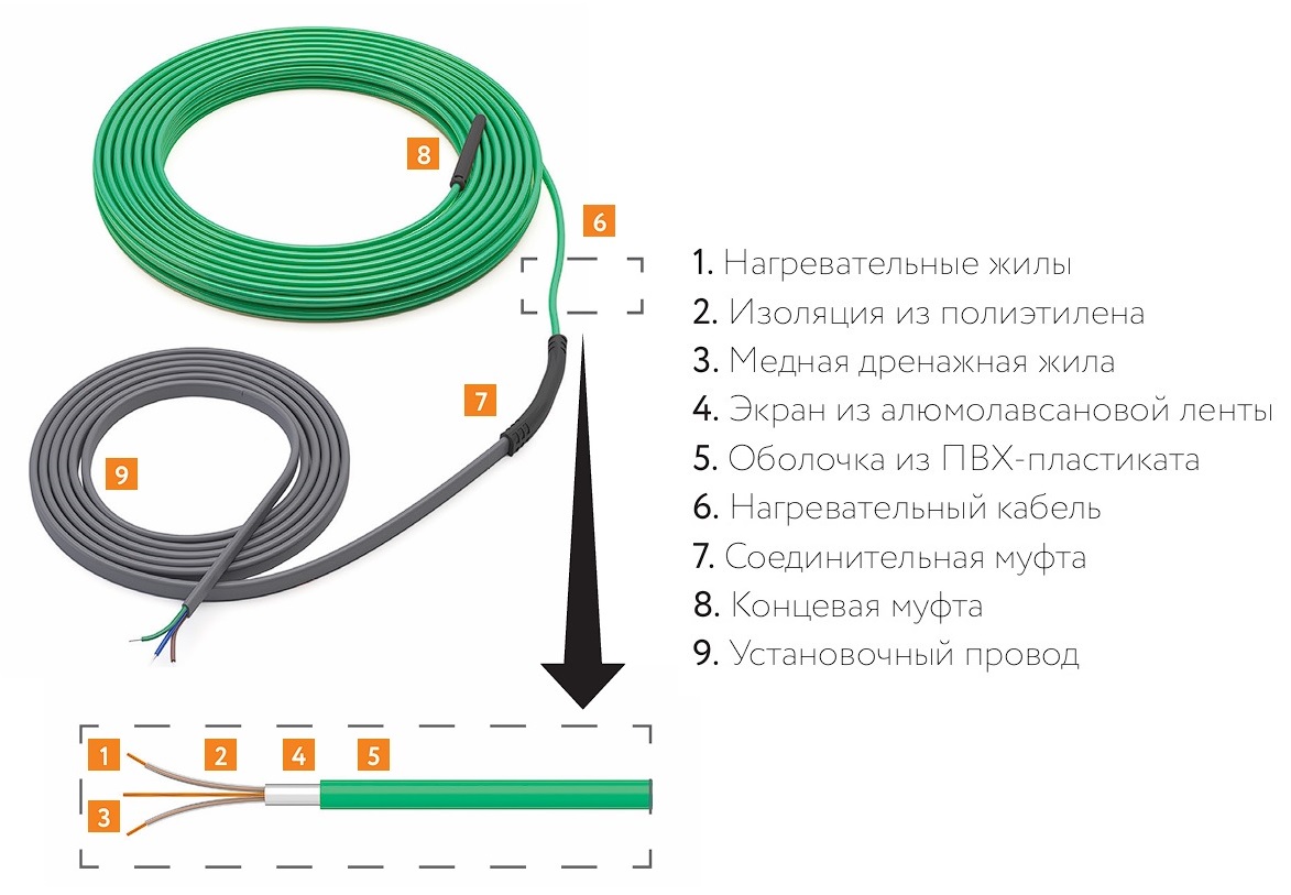 Кабель подогревает и сушит бетон необходимое время исходя из условий эксплуатации и размеров бетонной конструкции. После застывания бетона кабель отключают от сети питания, обрезают концы и оставляют внутри бетонной конструкции. Кабель поставляется в секциях.