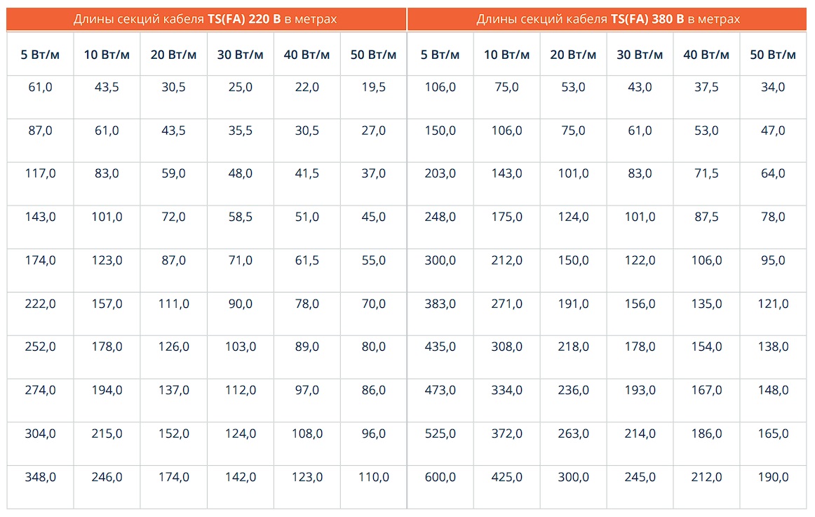 Погонная мощность при +10°С, Вт/м | 50 |