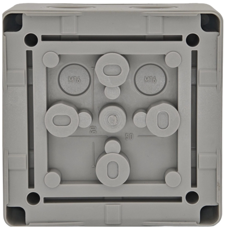 А на задней стенке предусмотрены 2 выбивных отверстия под кабельные вводы М16.