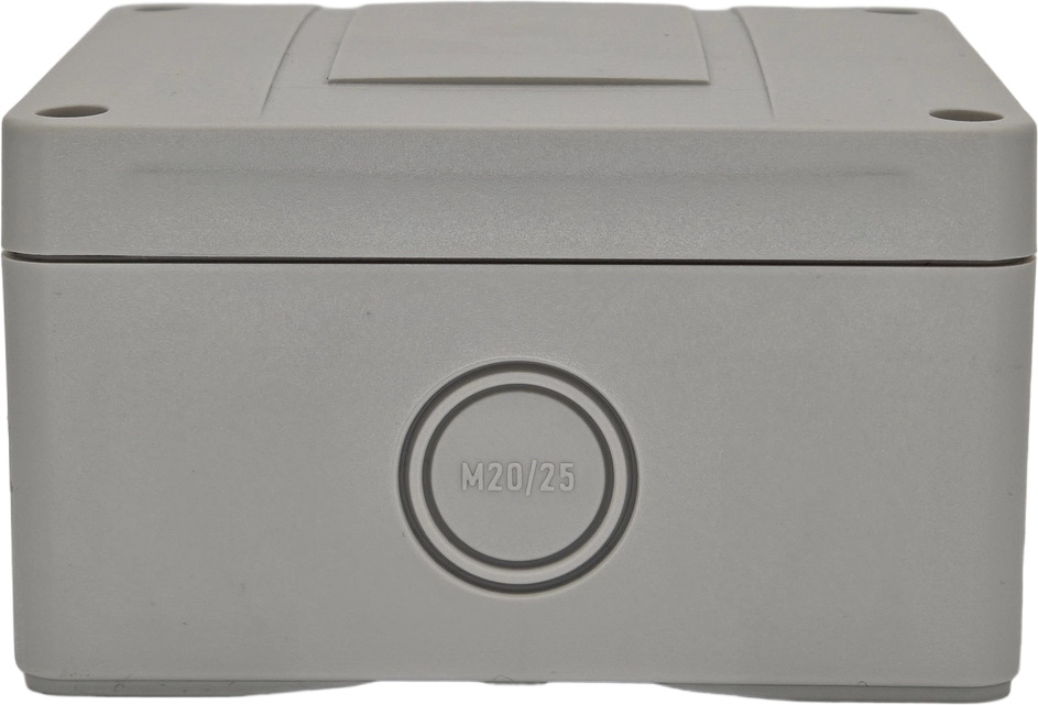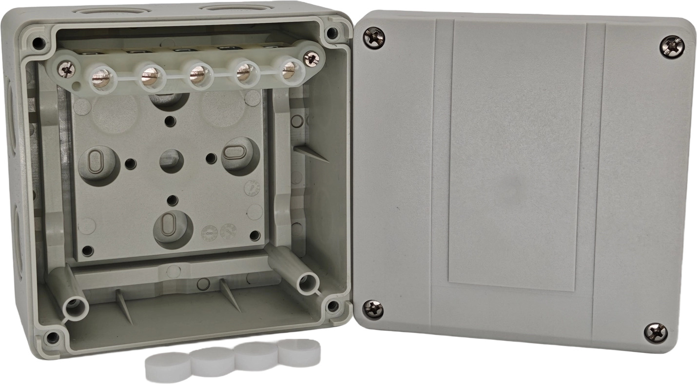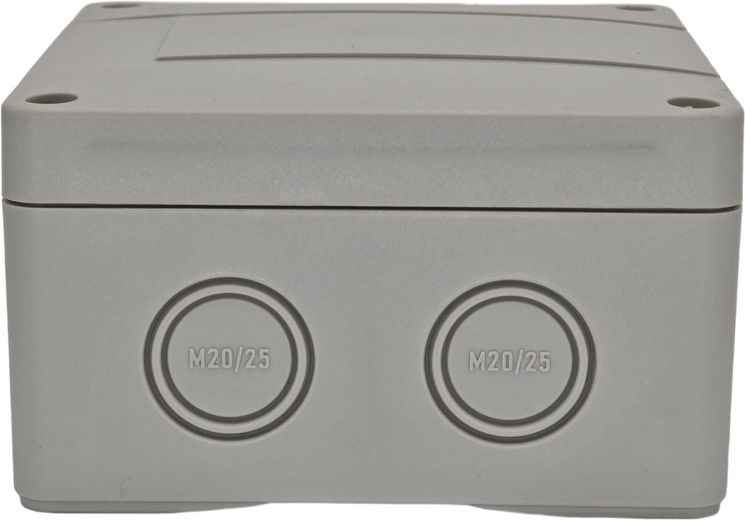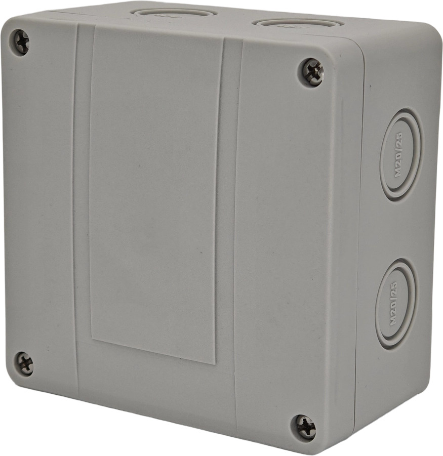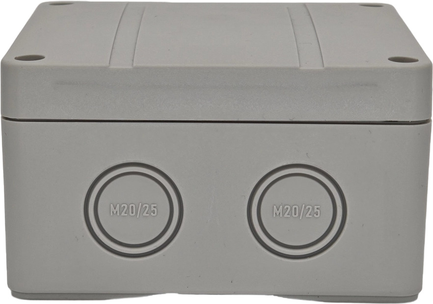 Корпус и крышка выполнены из поликарбоната армированного стекловолокном. Это прочный и износоустойчивый материал, стойкий к ультрафиолету и влаге. Степень защиты корпуса - IP66.
