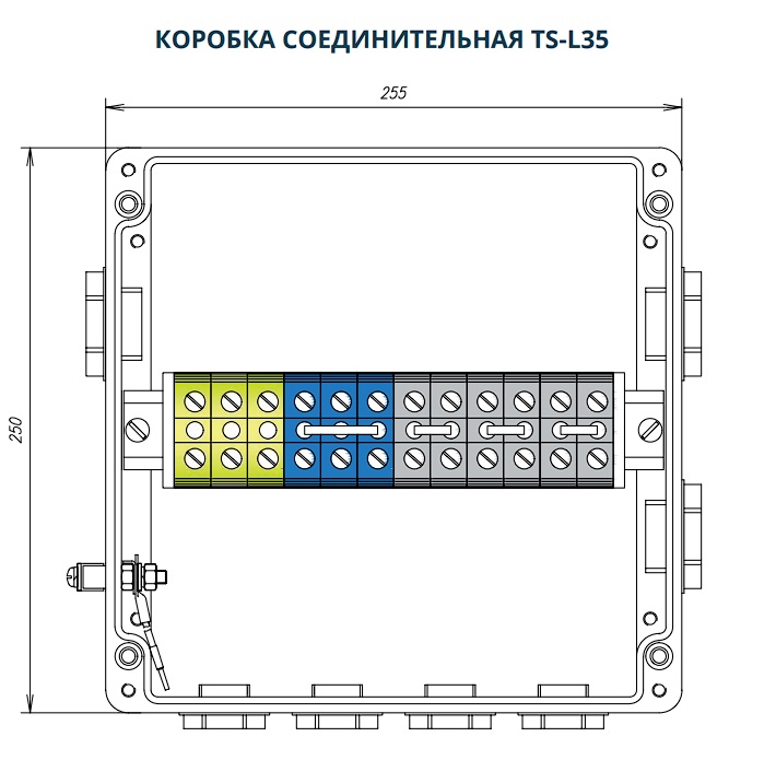 Коробка TS-L35 предназначена для разветвления кабелей силового электропитания. Коробка устанавливается на близлежащую металлоконструкцию.