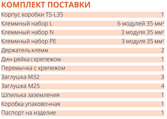 Применяемые клеммные наборы позволяют выполнить подключение многожильных или одножильных кабелей сечением от 2,5 до 35 мм².