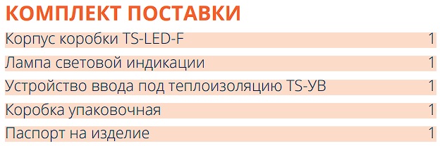 Коробка TS-LED-F устанавливается в конце обогреваемого участка и предназначена для индикации напряжения на саморегулирующихся нагревательных кабелях марок TSA, TSL, TSS и TSU.