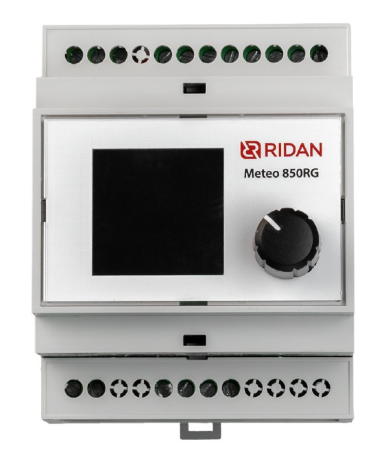 Система управления включает в себя терморегулятор Ридан Meteo 850RG с датчиком температуры воздуха наружной установки в комплекте и датчик кровли Ридан Roof 850RG или датчик грунта Ридан Ground 850RG (оба предназначены только для работы с Ридан Meteo 850RG и приобретаются отдельно). Датчики кровли и грунта предназначены для определения вида осадков (лёгкий снег, тяжёлый, мокрый снег, изморозь, дождь или "ледяной дождь") и контроля текущей влажности на участках обогрева.