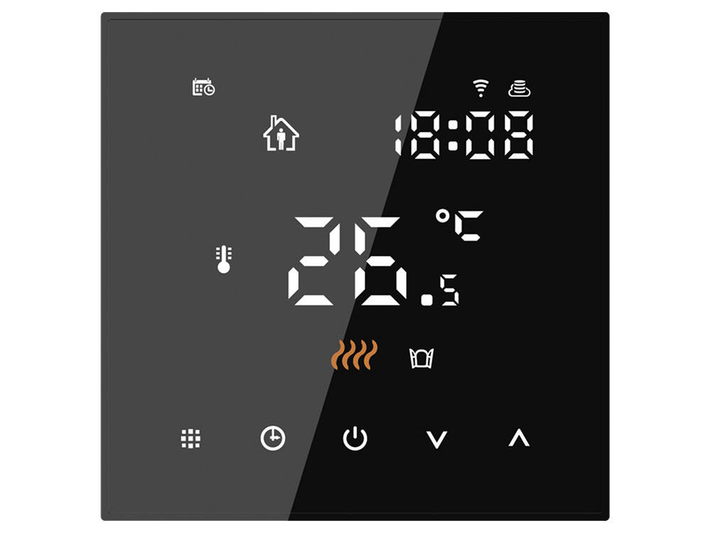 Цифровой терморегулятор «Русское тепло» ТР-505 с сенсорным дисплеем 3,5” и управлением по Wi-Fi. Имеет стильный, современный, лаконичный дизайн.