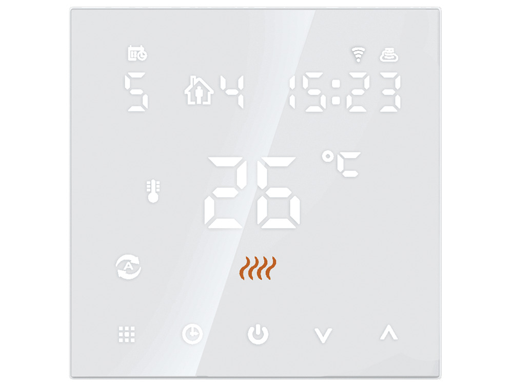 Цифровой терморегулятор «Русское тепло» ТР-505 с сенсорным дисплеем 3,5” и управлением по Wi-Fi. Имеет стильный, современный, лаконичный дизайн.