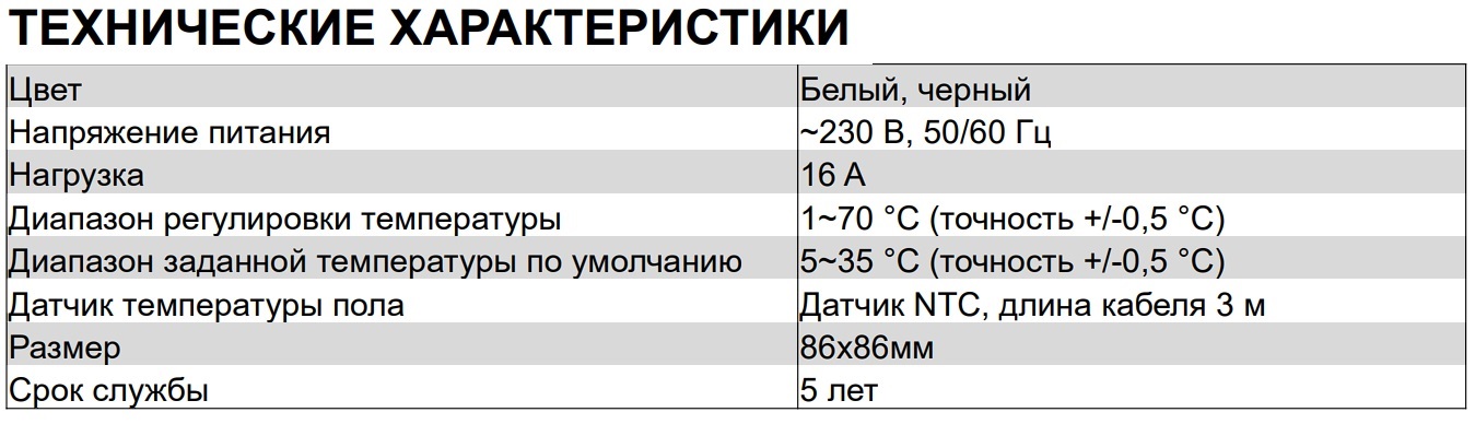 - 3-метровый кабель датчика температуры пола (NTC) и датчик воздуха